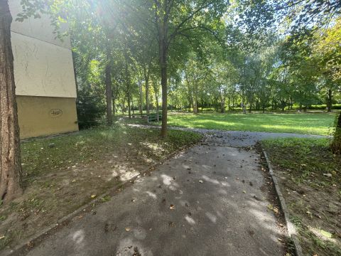 A lakás közvetlenül egy park mellett helyezkedik el, a rendezett lépcsőházból akár erre is kiléphetünk, míg a másik oldali kijárat a parkolókhoz vezet.