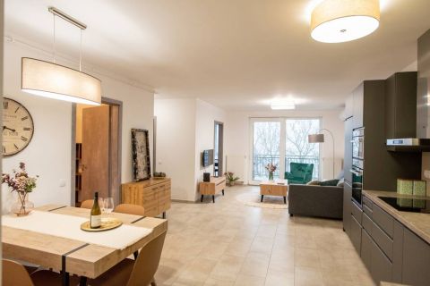 A 2020-ban épült, PRÉMIUM minőségű ingatlanban egy TÁGAS amerikai konyhás nappali, 2 hálószoba, 2 fürdőszoba, egy vendég mosdó, valamint egy erkély található.