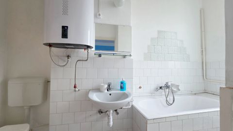 A fűtést konvektorok,  a melegvíz-ellátást villany bojler biztosítja.