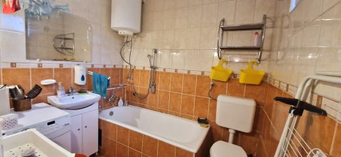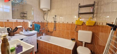 A kádas fürdőszoba kényelmet biztosít, a kis előtérben gardróbszekrény is elfér, így a tárolás megoldott. A lakáshoz saját tároló is tartozik, ami nagy előny.