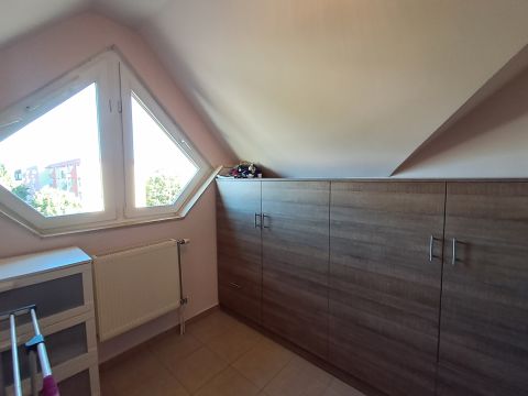Eladó Pécs-Rózsadombon a Fáy András utcában 3 emeletes tégla építésű társasház legfelső szintjén egy átalakított, bruttó 70 m2-es (nettó 62 m2) erkélyes lakás, szigetelt épületben.