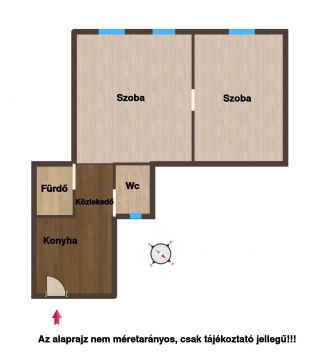 A lakás dél-nyugati tájolású, így egész nap világos, kellemes hangulatú terekkel rendelkezik. Az 1 + 1 félszobás elrendezés rendkívül praktikus: a tágas nappali mellett külön nyíló háló- vagy dolgozószoba is helyet kapott. A lakáshoz tartozik egy zárható, 4nm-es saját tároló is pince szinten.