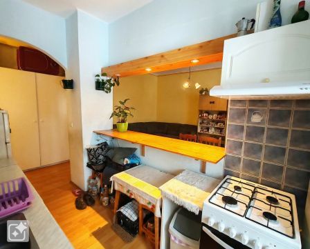 A lakás praktikus elrendezésű: a nappali és konyha egy kis átalakításnak köszönhetően szinte egy légtérbe került, így világos, jól kihasználható életteret biztosít. A külön nyíló szoba ideális hálószobának.