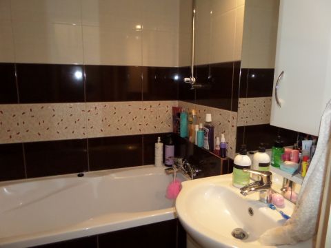 A lakásban a felújítás során megújultak a burkolatok, konyha és a belső terek.