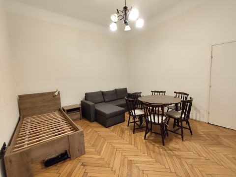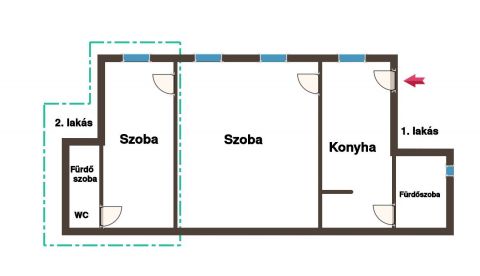 Eladó a VII. kerületi Dembinszky utcában egy földszinti, nagy belmagasságú, felújítást igénylő ingatlan, amely különleges jogi és műszaki adottságaival egyedülálló lehetőséget kínál. Az ingatlan különlegessége, hogy jelenleg természetben egyetlen tágas 42 m²-es két szobás lakásként funkcionál, de jogilag két külön helyrajzi számon szerepel. Ez azt jelenti, hogy az új tulajdonos minimális ráfordítással bármikor visszaállíthatja az eredeti állapotot, így egy 13 m²-es és egy 29 m²-es, külön bejáratú garzont kaphat, amely kiadás esetén dupla profitot vagy akár egy különálló irodát és lakást is eredményezhet.