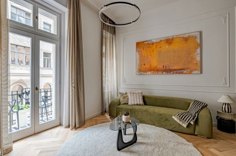 In the heart of Budapest's 5th district, right next to the Parliament, a designer-designed, fully furnished apartment is for sale, ready to move in immediately, all furnishings are included in the purchase price.