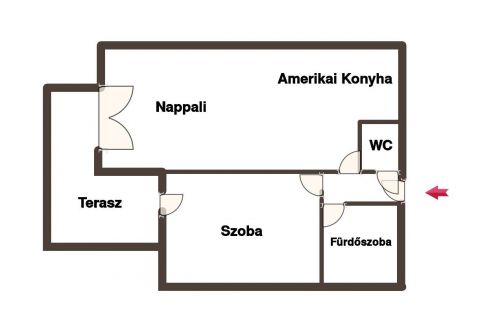 Amerikai konyhás nappali + 12 m²-es hálószoba