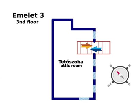 Elrendezés: 2 hálószoba, 2 fürdőszoba, amerikai konyhás étkező, kis tetőtéri szoba
