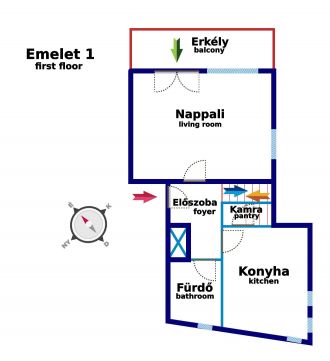 A lakás a második emeleten található (lift nincs), de közvetlenül a garázson keresztül is megközelíthető.