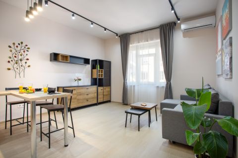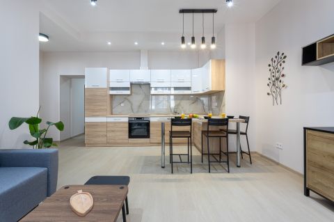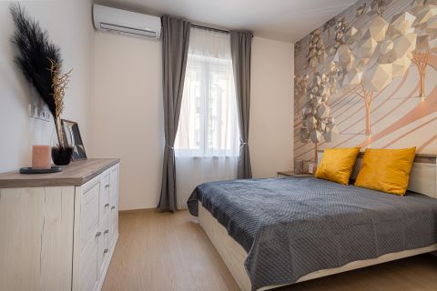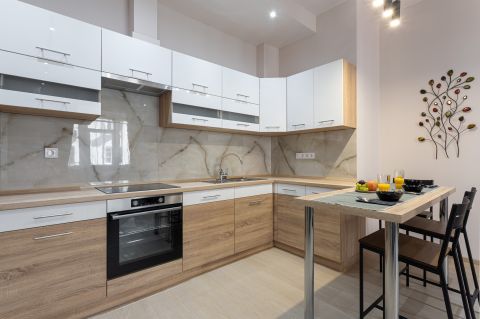 Az ingatlan teljesen berendezett, hűtő-fűtő klímával (H tarifával), konyhája gépesített (főzőlap, sütő, mosogatógép, hűtőszekrény, páraelszívó).