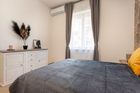 A világszínvonalon megújult Városligettől 300 méterre, a Damjanich utcában eladó 61 m2 alapterületű, teljeskörűen felújított, erkélyes, csendes közre néző, saját mérőórákkal felszerelt, bútorozott és gépesített nappali + hálószobás lakás egy jó állapotú, liftes társasház 4. emeletén.