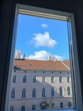 Az ingatlan néhány lépésre található a Duna-parttól, közvetlenül a Parlamenttel szemben, a történelmi belváros szívében. A nappaliból különleges látvány tárul elénk: a Mátyás-templom kupolája is látható, amely igazán egyedivé teszi ezt az otthont.