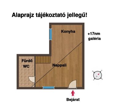 A fürdőszoba 4nm, a galéria rész pedig 17nm, ahol egy háló rész kerül kialakításra.