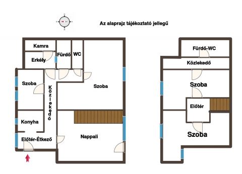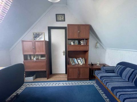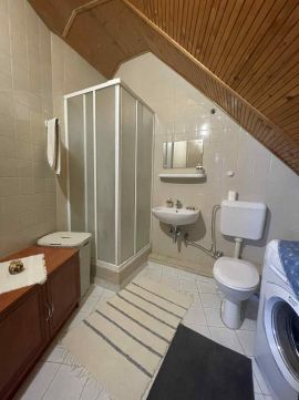 A felső szinten további két szoba található, közülük az egyik saját, fürdővel és WC-vel rendelkezik.