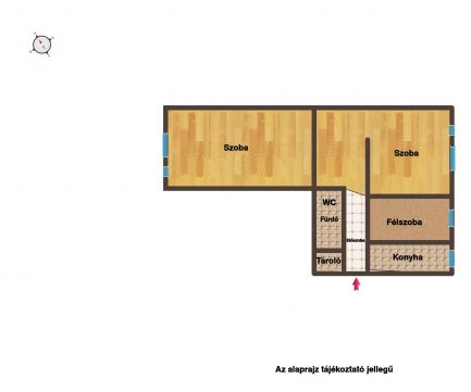 A lakás elrendezése praktikus: a 2+1 félszoba jól kihasználható, akár külön nyíló szobákkal, így családoknak vagy otthoni munkavégzéshez is ideális.
