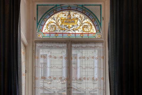 Spacious, light-filled rooms with original wooden windows and elegant classical atmosphere