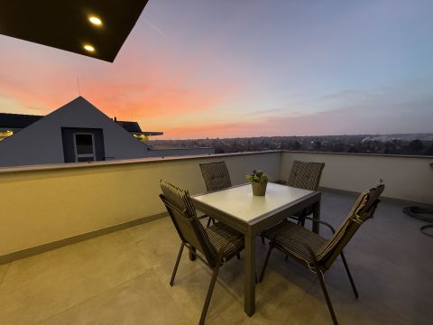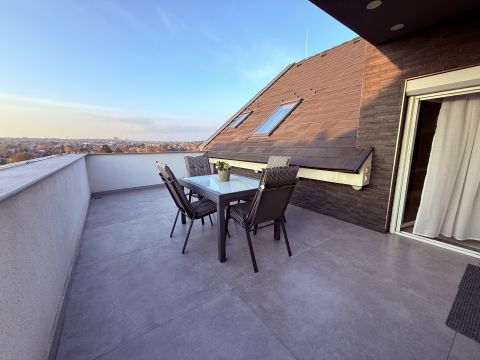 - Napfényes nappali konyhával, közel 30 m2-es terasszal, ahonnan szép kilátás tárul elénk a városra és élvezhetjük a naplemente látványát is.