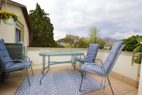 Egy napfényben úszó, 20 nm-es nappali, ahonnan közvetlen kijárás nyílik a 6 nm-es, hangulatos teraszra.