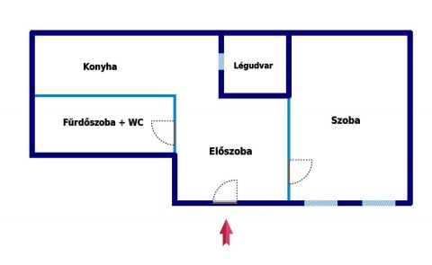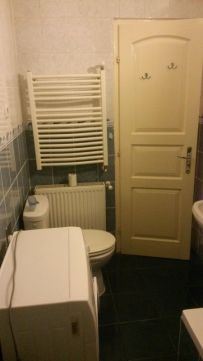 Jobbra található a nagyszoba, balra pedig a fürdőszoba.