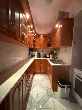 Körfolyosón keresztül jutunk el a lakáshoz, ahová belépve a konyha-étkezőben találjuk magunkat.