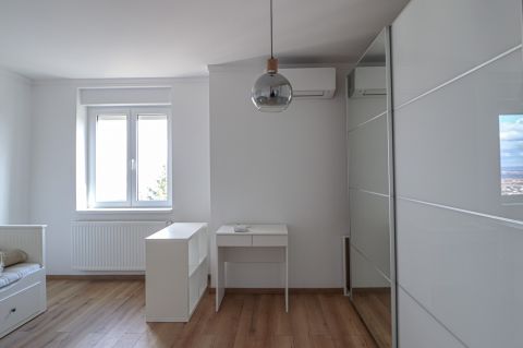 - nagy méretű szülői háló saját fürdővel és panorámás terasszal,