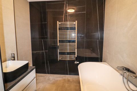 A lakás fűtését Bosch kazán biztosítja radiátoros hőleadókkal, hűtését, hűtő-fűtő klíma.