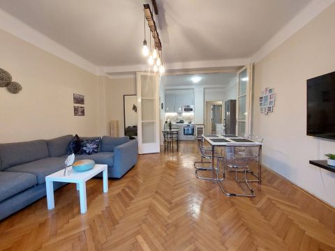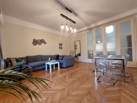 A Dob utca egyik ikonikus épületében kínáljuk ezt a tulajdoni lap szerint 80m2-es, 2 szoba, hall, cselédszobás lakást, melynek erkélyéről részben a Klauzál térre is nyílik kilátás.