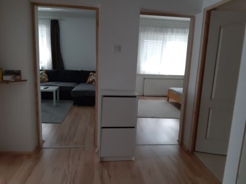 Az étkezős konyhája tágas akár egy családnak és ideális lehet, mindkét szobája napfényes, a nappaliként használt szoba 20 m2, a jelenlegi hálószoba 16 m2-es.