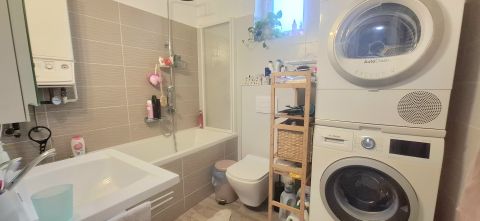 A lakás világos és kényelmes, a konyha vidéki stílusú, meleg, barátságos hangulatot ad az otthonnak. A beépített gépek mosogatógép, főzőlap és tűzhely a vételár részét képezik. A fűtésrendszer megbízható, a hároméves gázkazán gondoskodik a téli komfortról, a régi eternit csöveket kicserélték. A villany H tarifás, így a költségek kedvezőbben alakulhatnak. A fürdőszoba teljesen felújított, a két WC és a tágas kamra pedig tovább növeli a lakás kényelmét.
