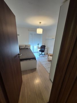 A lakás Pécsett, Egyetemvárosban, a Szigeti útra merőleges, csendes kis utcában 2012-es társasház első emeletén található.