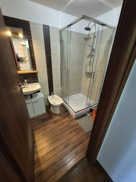 Fürdőszobájában új zahany került beéptésre, a wc-kézmosó külön helyiségben található.