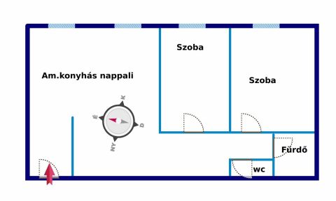 Amerikai konyhás nappalival és 2 különbejáratú hálószobával rendelkezi.