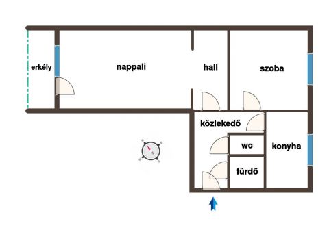- 55 m²-es, praktikus elosztás (2 szoba + hall)