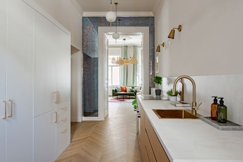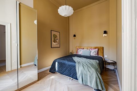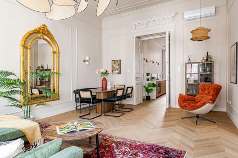 Eladó egy exkluzív, 108 m²-es különleges hangulatú lakás Budapest egyik legszebb műemlék épületében, a Vígszínház közvetlen szomszédságában. Az ingatlan a harmadik emeleten található egy öt szintes, liftes házban, amely a város 100 legszebb épülete közé tartozik.