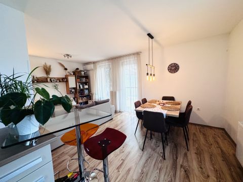 Az ingatlan amerikai konyhás nappaliból, két kényelmes hálószobából, külön fürdőből és WC-ből áll. A lakáshoz tartozik egy nagyméretű, fedett terasz, valamint egy kis, saját kertkapcsolat, ami tökéletes helyszín a pihenésre vagy baráti összejövetelekre.