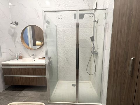 Az ingatlan igényesen kialakított, zuhanyzós fürdőszobával, praktikus kamrával és teljesen felszerelt, gépesített konyhával rendelkezik. A lakás bútorozott, azonnal költözhető állapotban várja új bérlőjét.