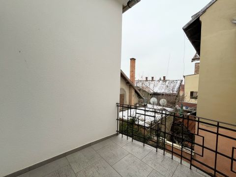 A pihenést egy kényelmes nagyságú, udvarra néző erkély is segíti.