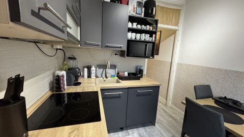 A fürdőszoba nemrég új burkolatot és szekrényt is kapott, a konyha modern bútorral és beépített gépekkel rendelkezik, mely a vételár részét képezik!