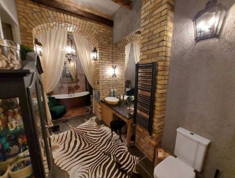 - egyedi design: antik gerendák, különleges burkolatok, designer tapéták