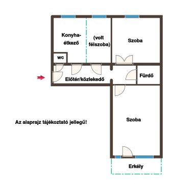 A félszobát korábban egybenyitották a konyhával (visszaalakítható).