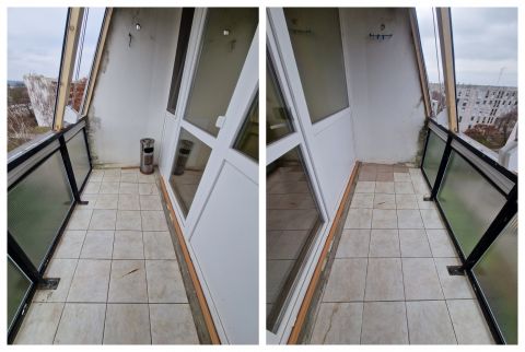 Az erkélyen újak a redőnyök, valamint a villamos hálózat is részben cserélve lett.