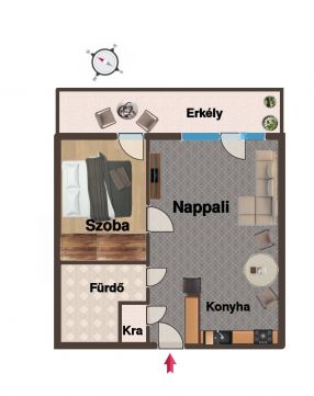 A város egyik legkedveltebb részében, egy 42 m²-es 2. emeleti erkélyes lakás, egy nemrégiben épült rendezett társasházban.
