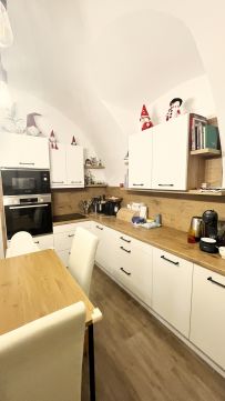A kedves, hangulatos, boltívekkel megépített lakásban található egy nappali, egy szoba, konyha+ étkező, előszoba , fürdő és Wc.