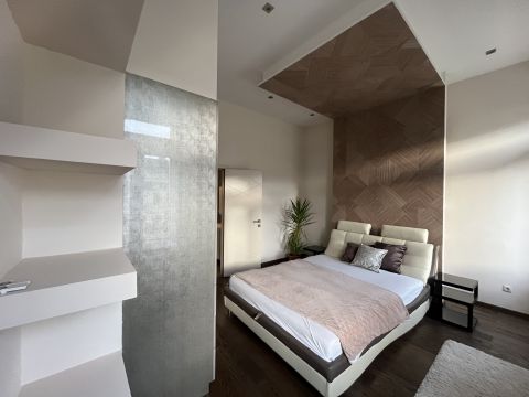 A lakás belsőépítész által megálmodott, teljes körűen felújított, modern bútorokkal berendezett, prémium gépekkel felszerelt, klímás. Elektromos redőnyök és kandalló növelik a kényelmet.