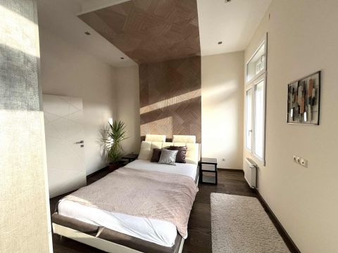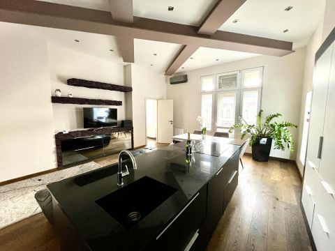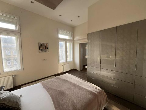 Kiadó minimum egy évre egy exkluzív, 101 m²-es, 4. emeleti luxuslakás egy gyönyörűen felújított, klasszikus liftes társasházban.