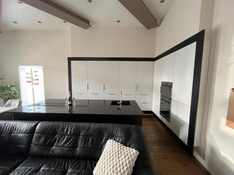napfényes amerikai konyhás nappali étkezővel és a lenyűgöző dunai panorámás erkéllyel