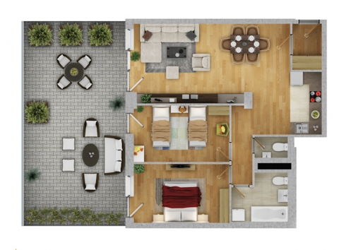 Az ingatlan egyik legnagyobb értéke a 47,16 m²-es privát terasz, amely ritka lehetőség a környéken: ideális csendes kikapcsolódáshoz, gyermekek biztonságos játékához vagy meghitt baráti összejövetelekhez.