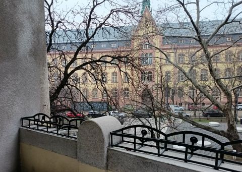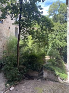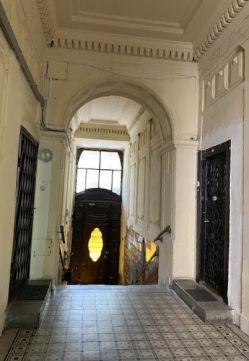 Szecessziós, 1919-ben épült, patinás társasház belső udvara a türbére néz