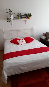 Nappali: beépített szekrény, másik francia ágy, fali polc