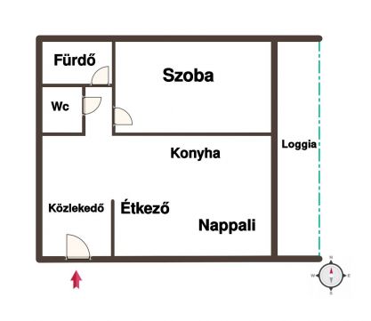 - Nappali + amerikai konyha, + 1 szoba, külön fürdő, külön Wc, loggia